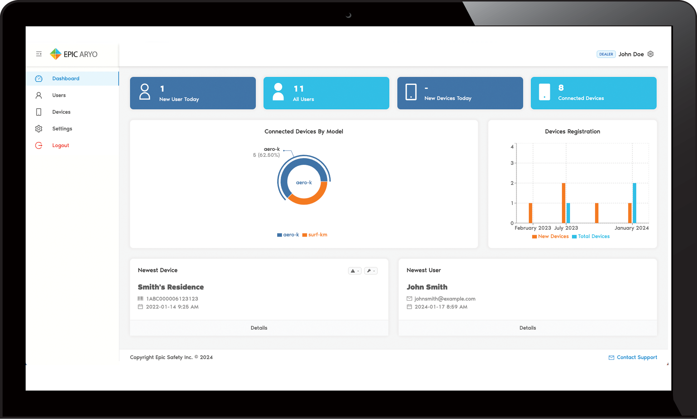 Aryo Cloud is Epic Safety’s centralized management platform for IoT and cloud connected devices and users, designed to give organizations full control and visibility across their systems. It enables remote monitoring, configuration, updates, and troubleshooting in real-time, simplifying management, improving up time, and ensuring secure, efficient operation of mission-critical infrastructure.